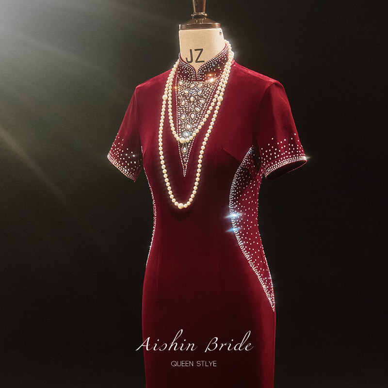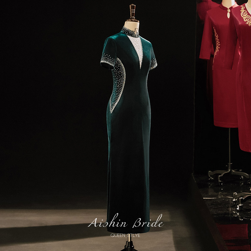 Mother Wedding Banquet Gown < Drunk And Windy > Happy Mother-In-Law's Qipao Wedding Toast With Young Conspicuos Velvety Velvet Dress
