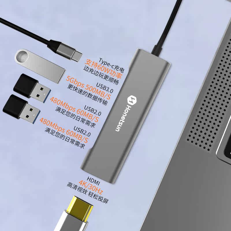 Henghong Shun typec expands dock expansion macbook converter usb set junction network route adapter to hdmi