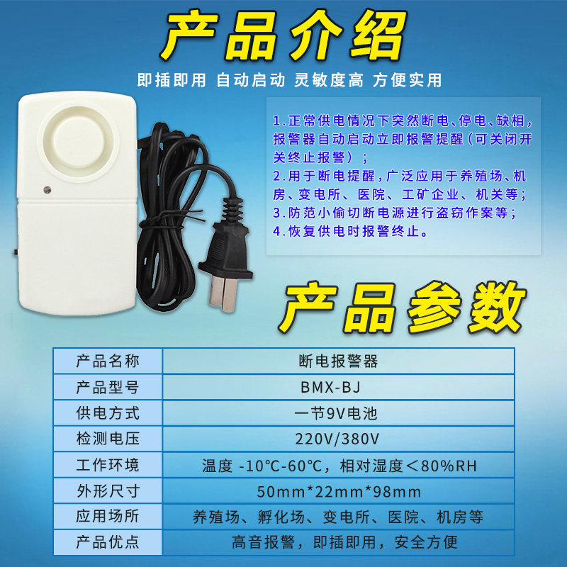 Bao Mingxiang power outage alarm breeding factory room three-phase deficiency phase decanter 220380V power cut alarm-Taobao