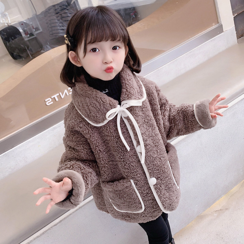 Korean girls' lamb velvet jacket 2022 new Korean version of the Western style children's thickened fur one-piece windbreaker autumn and winter