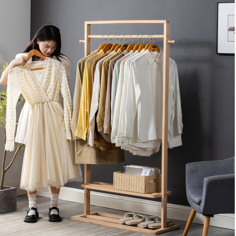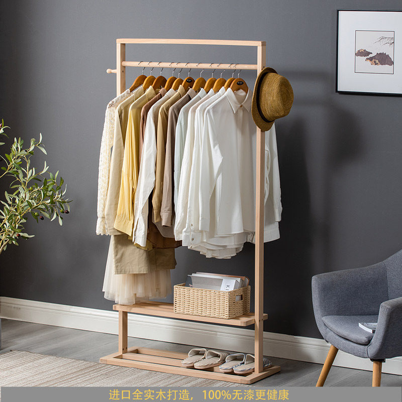Log unpainted floor solid wood coat rack Nordic ins bedroom hanger net red children's light luxury hanger rack
