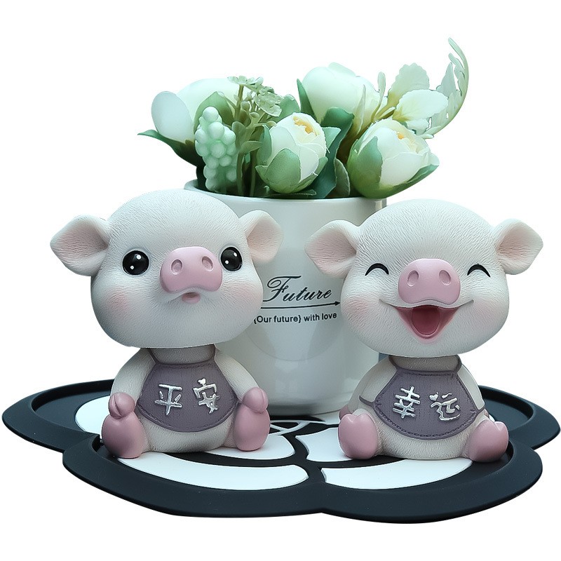 Car in-car Ornament Pendulum in car Creative ecstasy Small pig with female upscale decorative supplies in the middle of the car