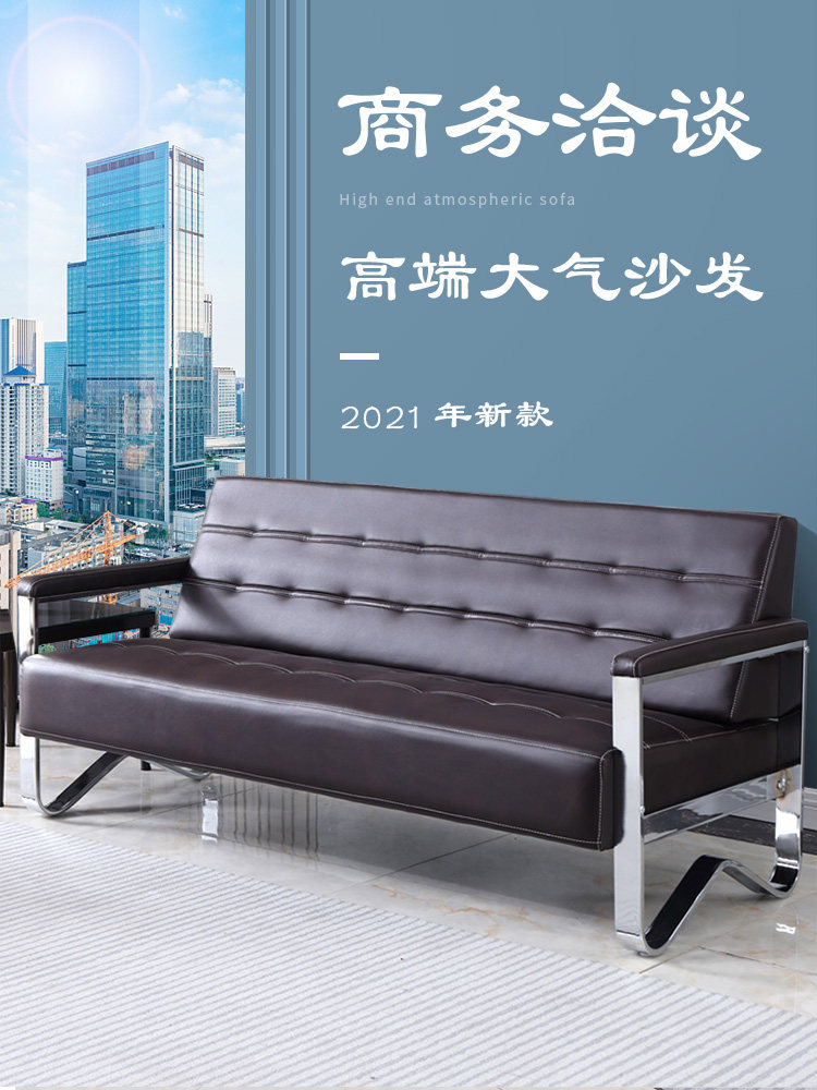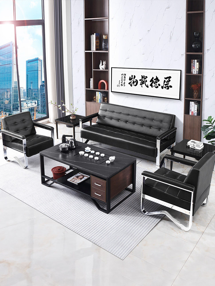 Modern minimalist office sofa coffee table combination set steel reception room meeting rest area three-seat leather sofa