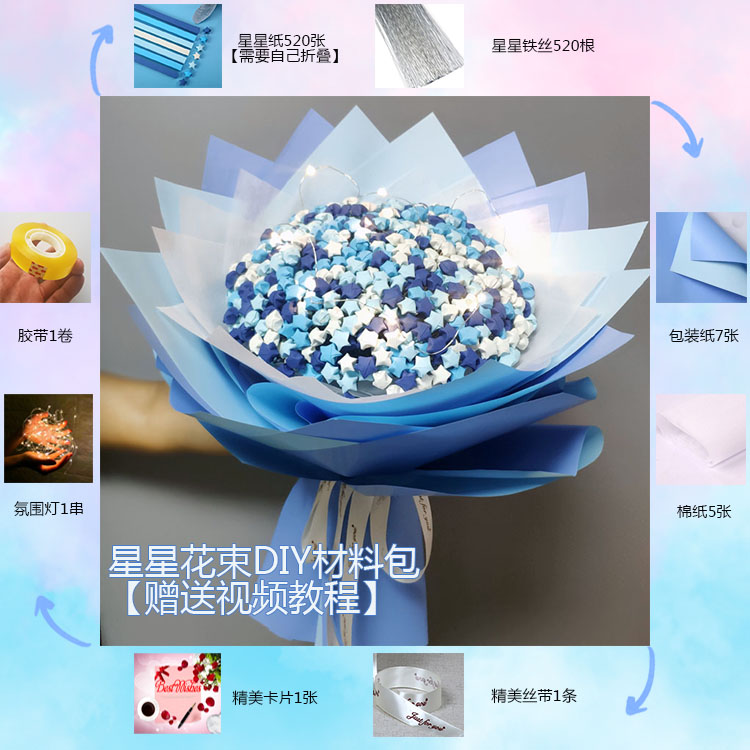 Star bouquet diy material full set of handmade materials star origami vibrato with the same paragraph for girlfriend gift