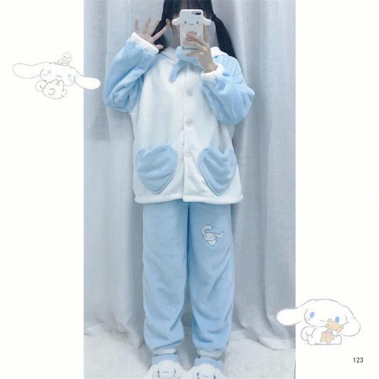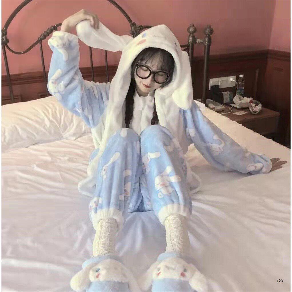 Pajamas women's winter suits thickened and can be worn outside coral velvet cute flannel warm home clothes big ears jade gui dog