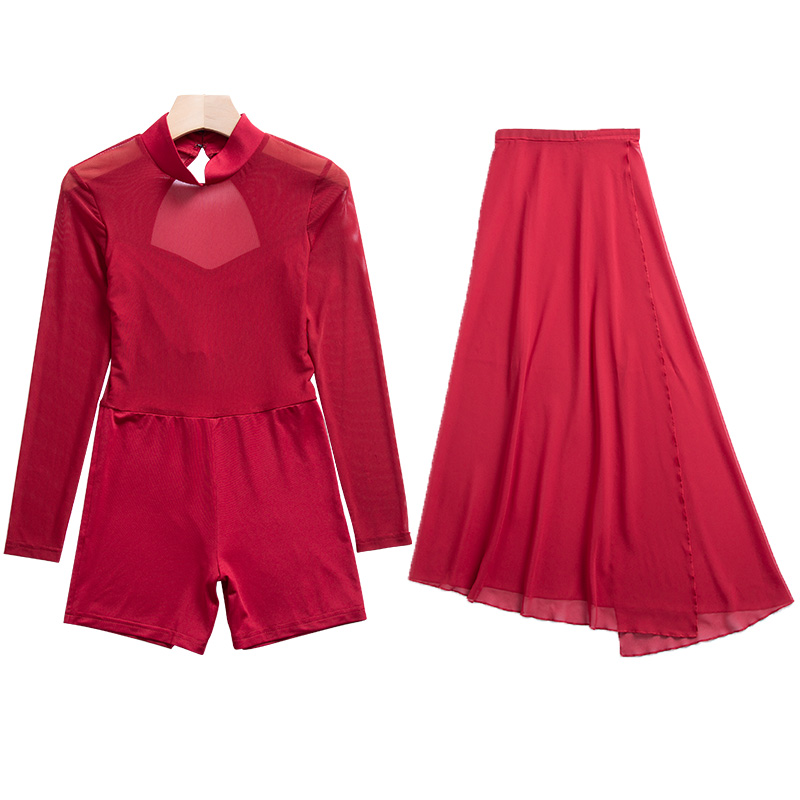 Crimson Two sets (blouses with four-corner pants one sheet of yarn tightness waist dress) Team Customized please consult customer service Forbidden City Red 3 pieces (crimson red blouses red half dress late smoke cashew seal) black tea (Faith)