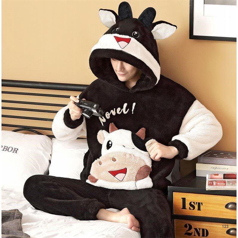 Coral Suede Men Sleeping clothes autumn winter style Winter Thickened plus flannel Flannel Cartoon Men's Winter Home Suits Suit