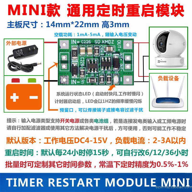 MINI special small size DC power supply timing restart module timer DC5V-15V 2A-3A