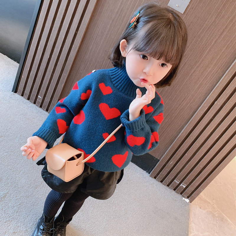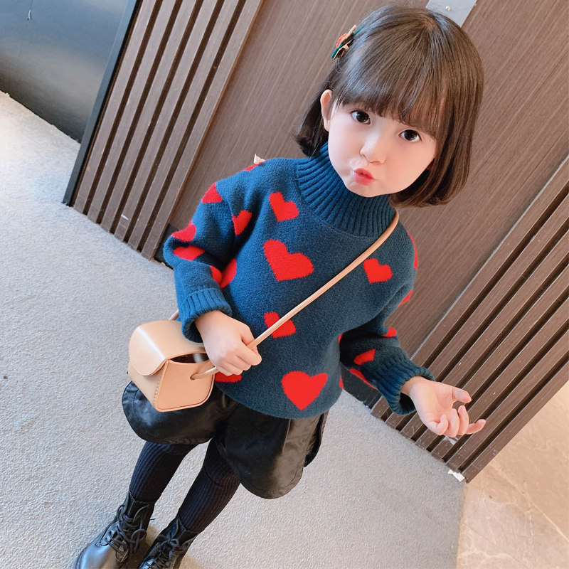 Girl High Collar Sweater Spring Autumn 2021 Autumn Winter Clothing Women Baby Needles Jersey Jersey Undershirt Children Plus Suede Blouse Spring Clothing