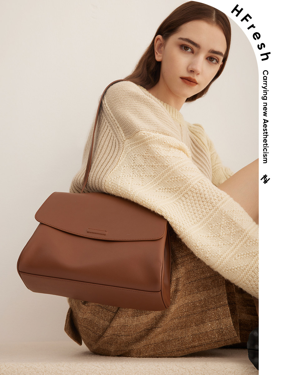 HFresh one-shoulder Messenger large bag portable tote bag women's bag new 2021 autumn and winter leather large-capacity bag
