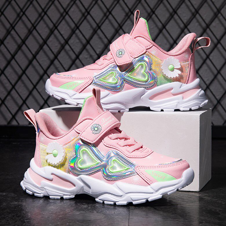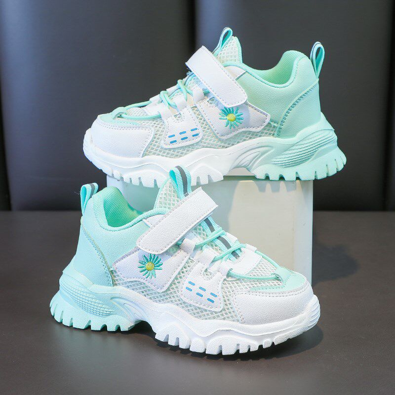 Spring girls' sneakers children's mesh shoes spring and autumn 2023 new mesh breathable leather single shoes medium to small