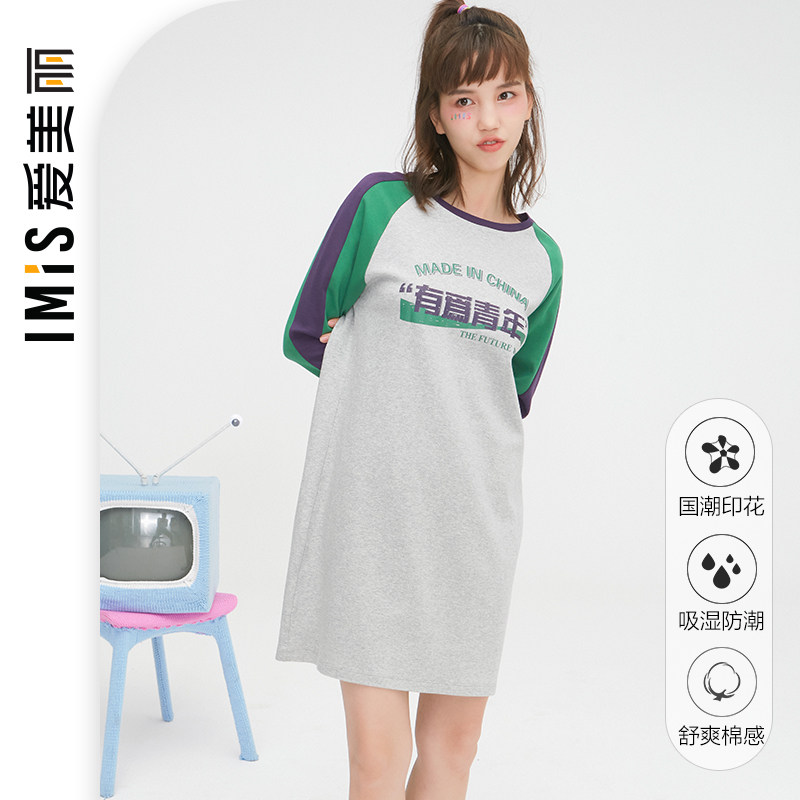 Love Beautiful Official Pure Cotton Sensation Campus Wind National Tide Lady Sleeve Heads Sleeping Skirts IM44BDY1