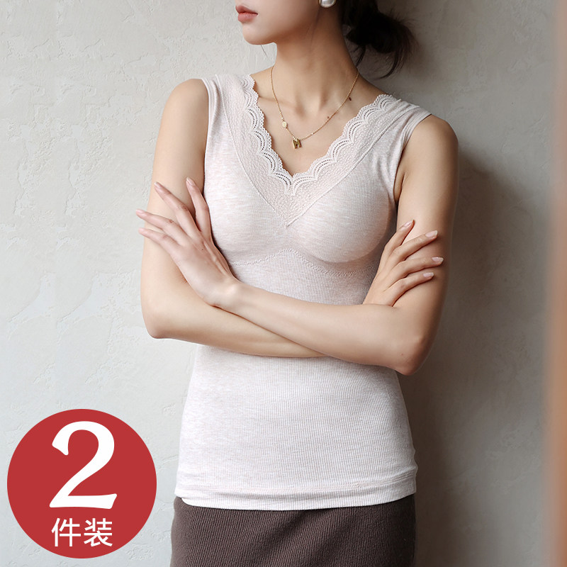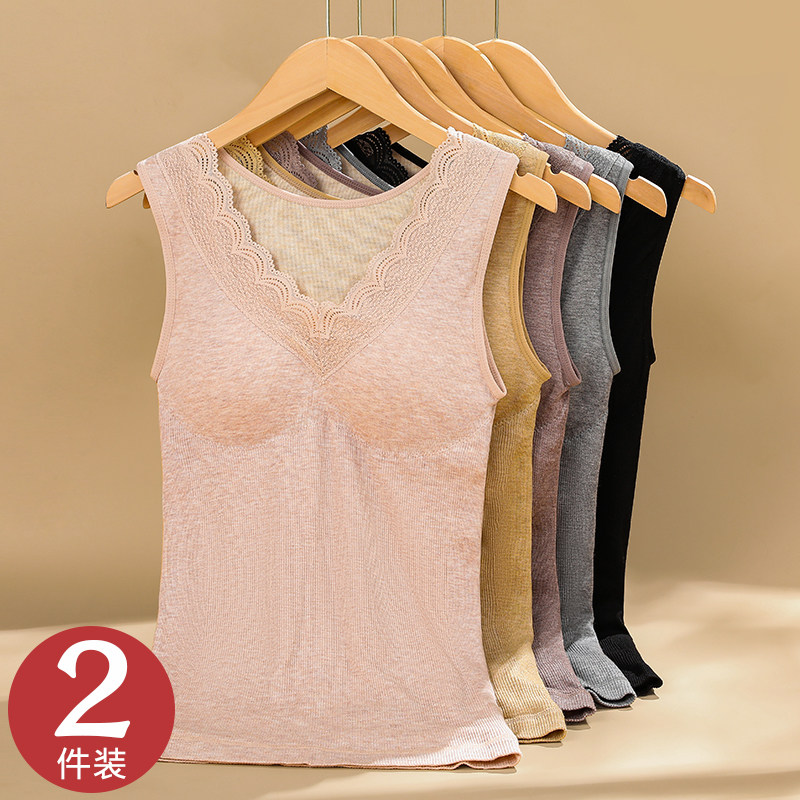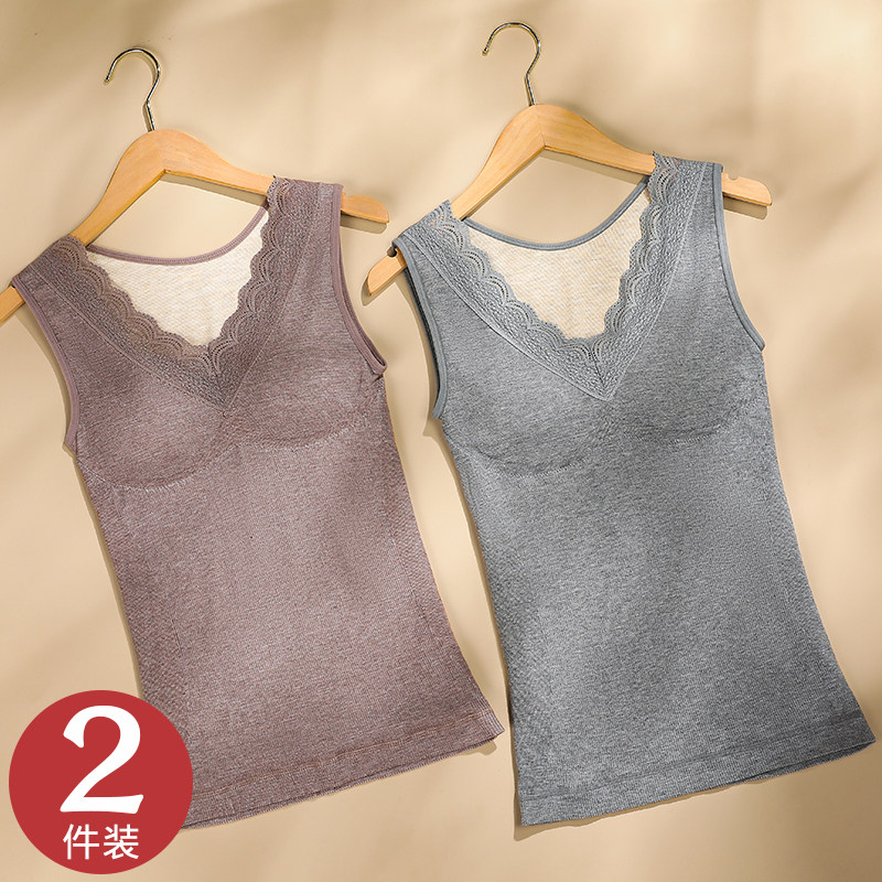 Autumn and winter warm vest ladies plus velvet thick lace tight body cotton underwear bottoming cold suspender top