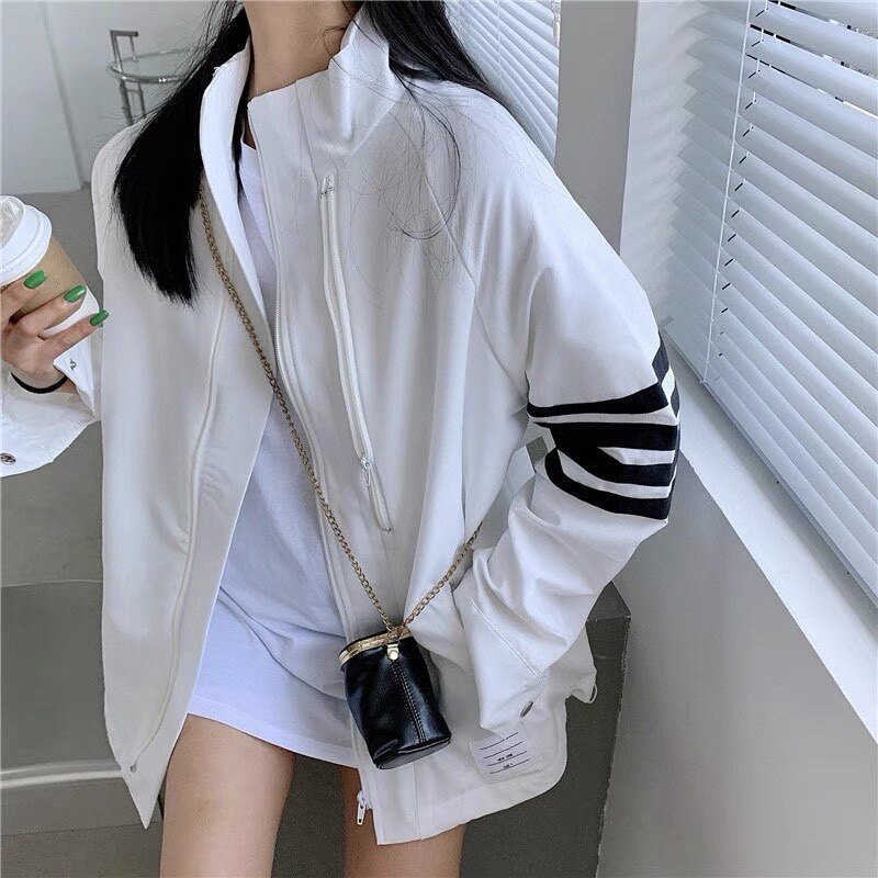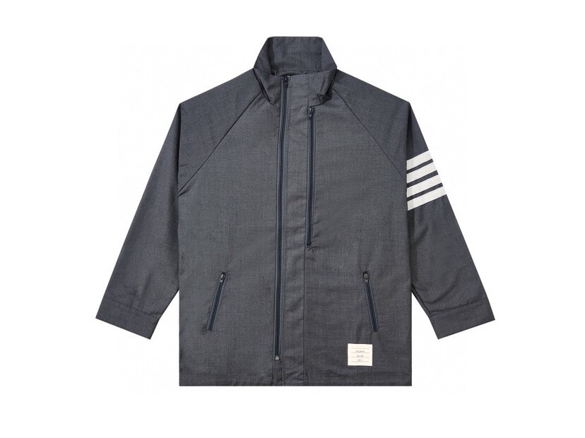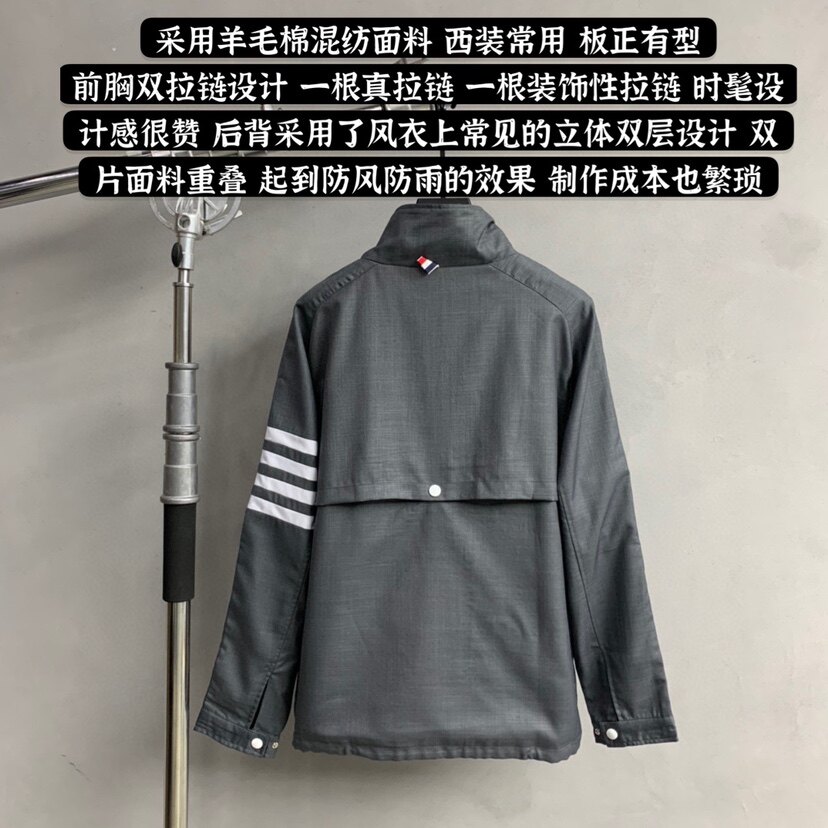 New TB stand-up collar double zippered with long section of submachine jacket Jacket Dressing Style Casual Jacket Easy for men and women Four bars