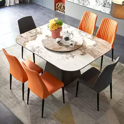 Rock plate modern simple light luxury table long Square flat number new Chinese marble round table chair combination