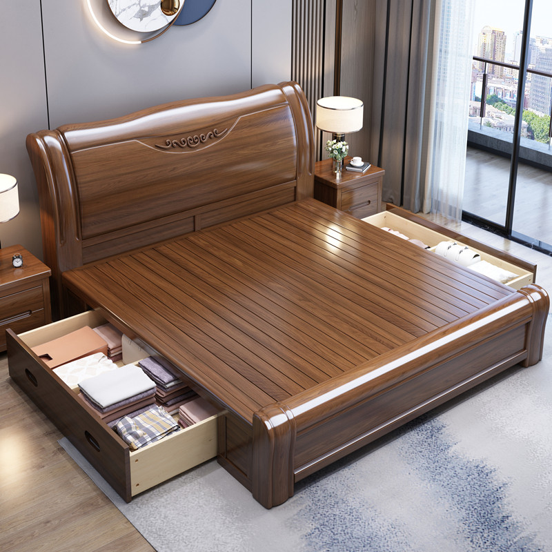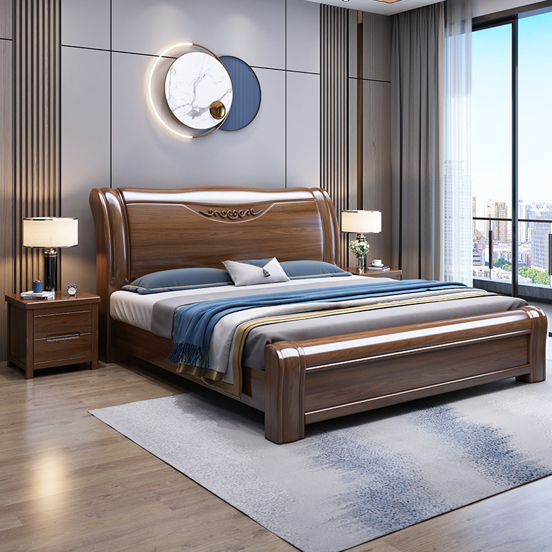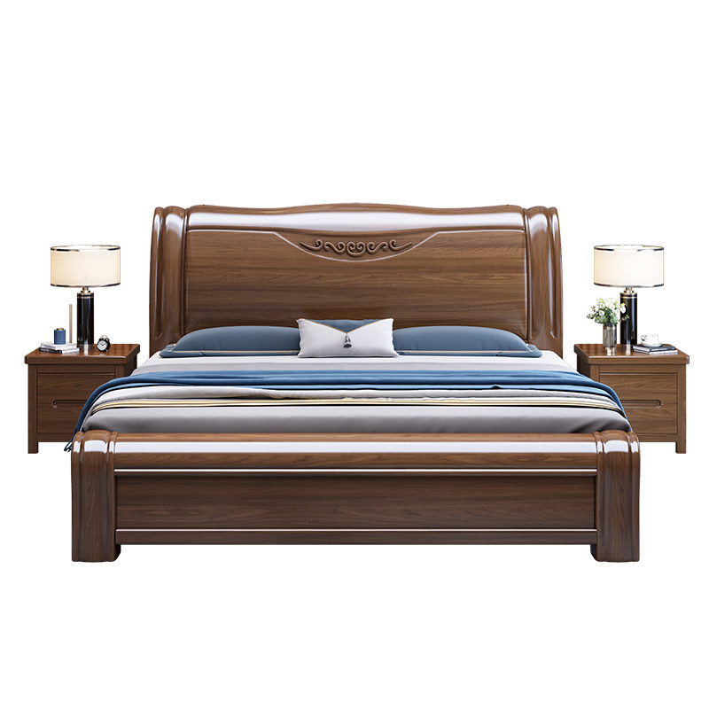 Walnut solid wood bed Chinese style 1 85 meters double bed modern minimalist master bedroom storage wedding bed factory direct sales