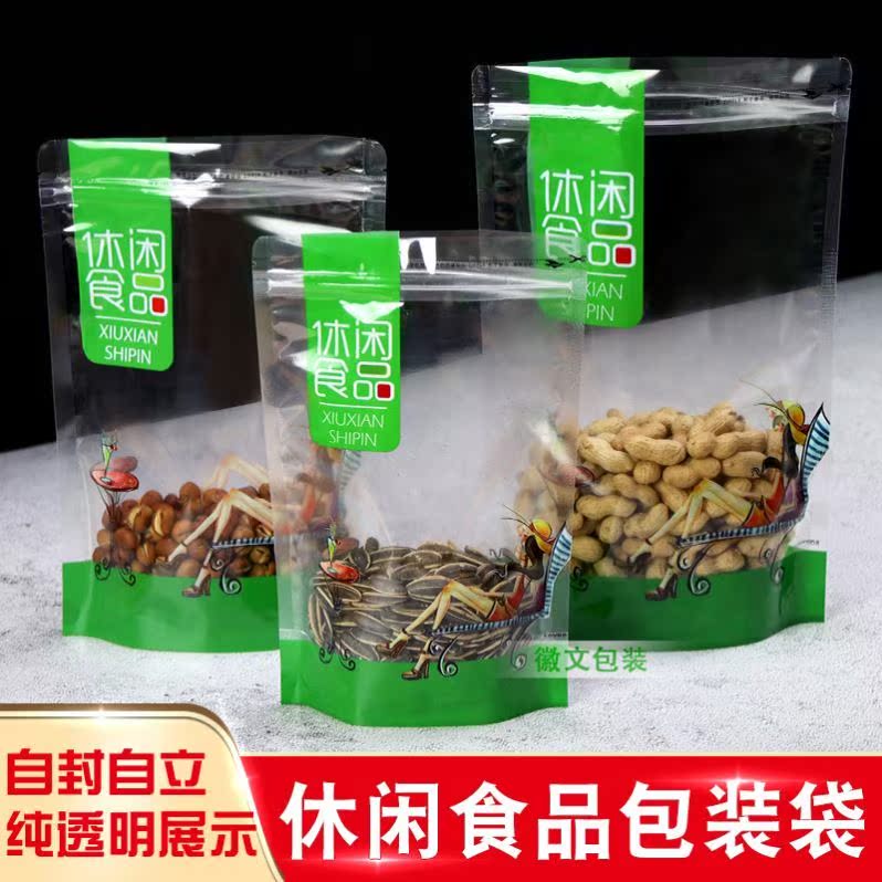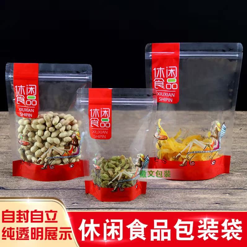 Transparent casual food packaging bag dried fruit snacks self-supporting self-sealing bag food grade plastic bag bookbinding wholesale