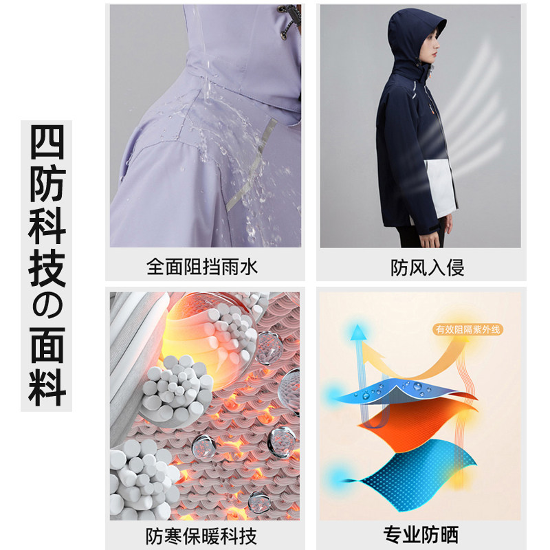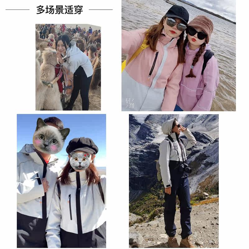 Japanese craft jacket men's and women's three-in-one jacket autumn and winter plus velvet detachable windproof waterproof tide brand ski suit