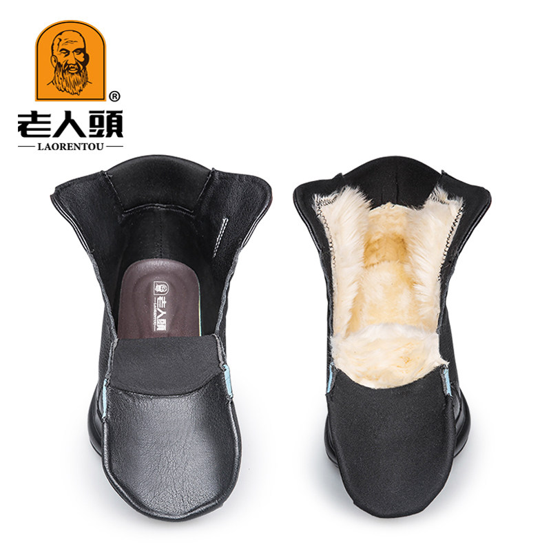 Elderly Head Leather Leather Soft Bottom Winter Gush Warm Cotton Shoes Head Layer Cow Leather Non-slip Thickened Northeast Snowy Boots