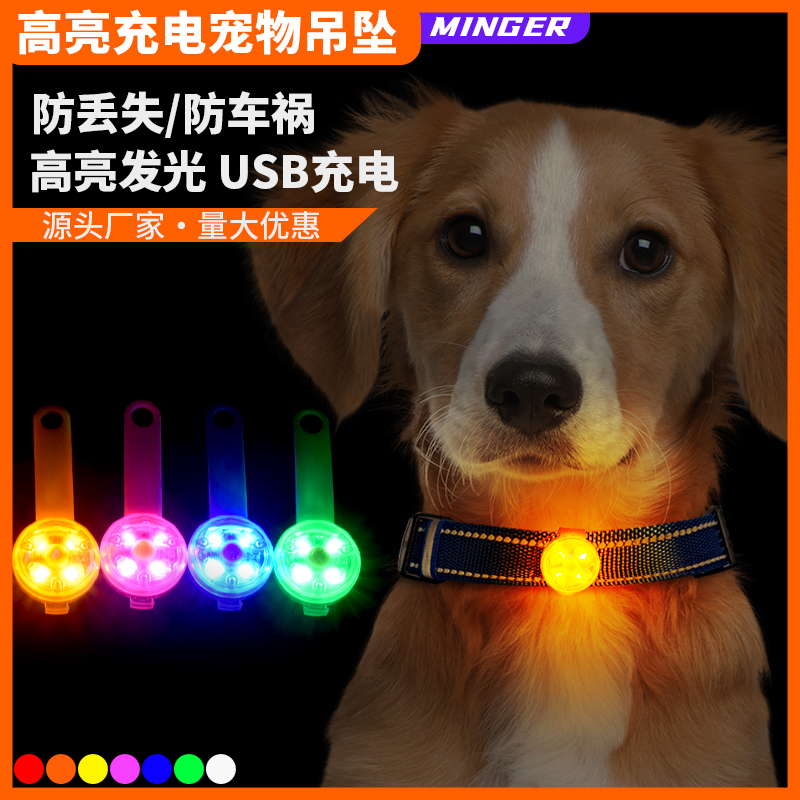 USB charging dog luminous necklace pet accessories waterproof silicone pendant outdoor dog walking warning light can be customized
