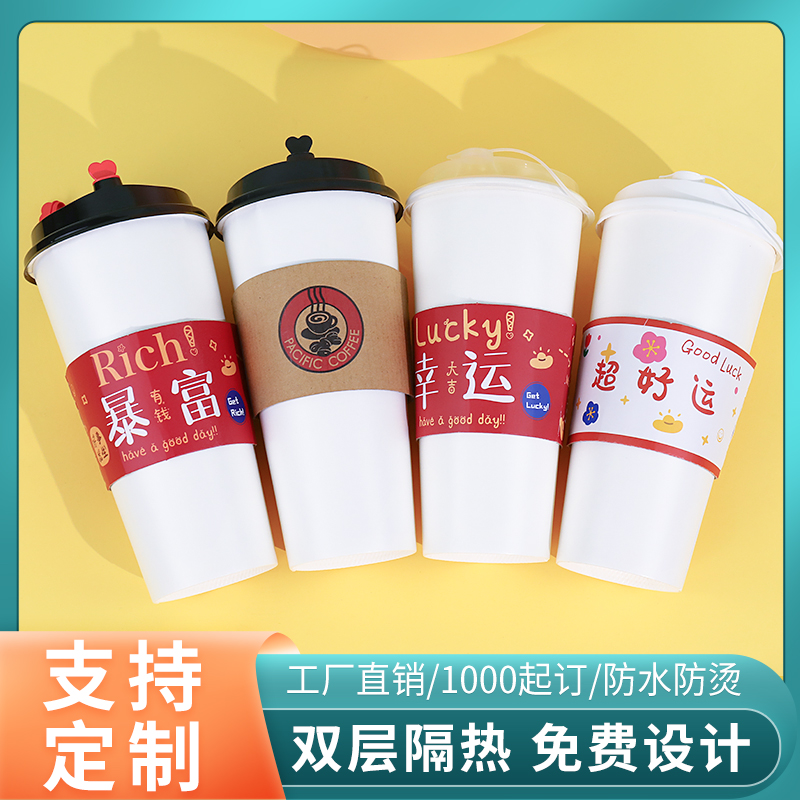 Disposable milk tea cup set custom logo coffee hot drink cup heat insulation anti-scalding double corrugated cup set special for milk tea shop
