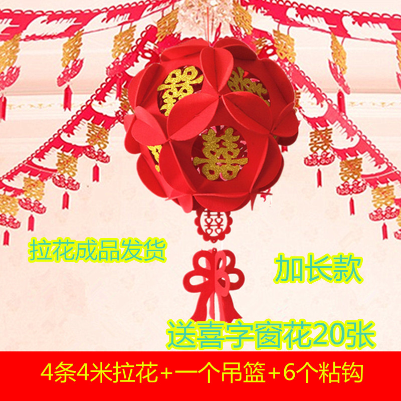 Lengthen 4 meters 5 5 meters wedding room pull flower wedding non-woven fabric happy word pull flower wedding new house decoration pull flower palace lantern