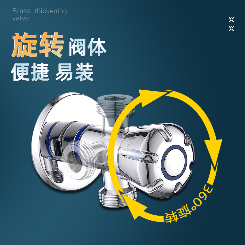 German craftsmanship all-copper cold and hot water angle valve toilet water heater valve switch three-way one out of the water stop valve
