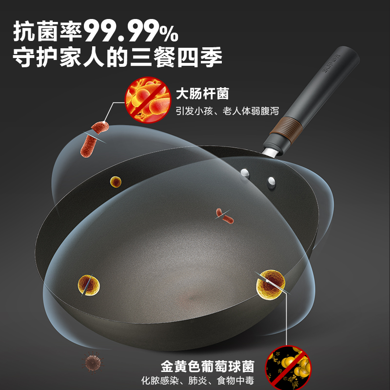 Supor iron pot frying pan antibacterial household non-stick pot gas stove suitable for uncoated titanium real stainless frying pan