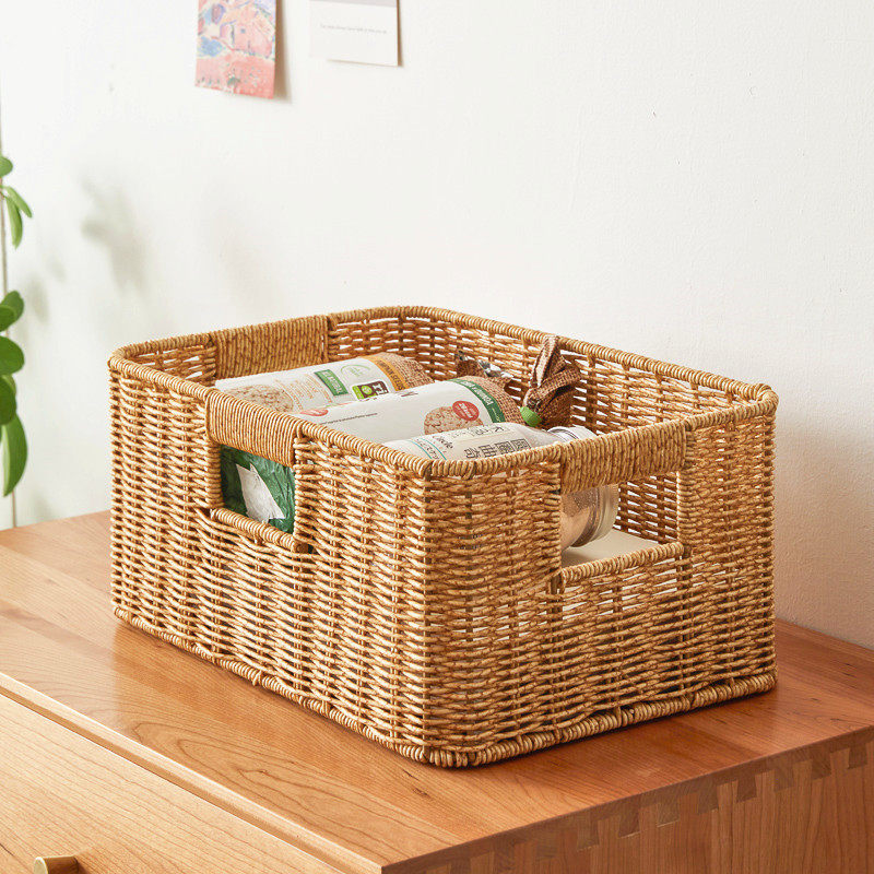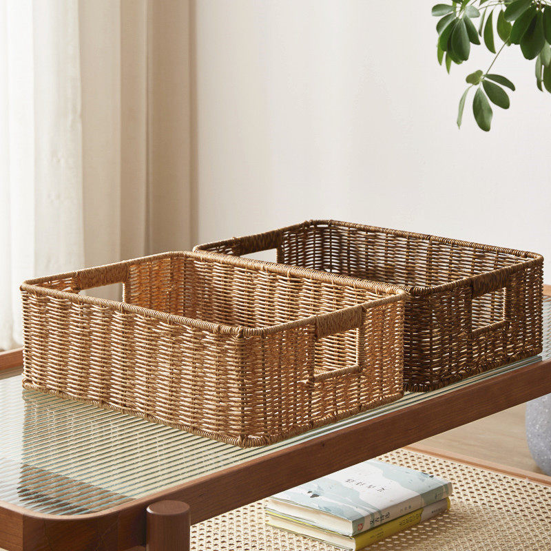 Rattan Storage Basket Living Room Woven Storage Basket Bathroom Storage Basket Toy Finishing Basket Office Sundries Storage Box