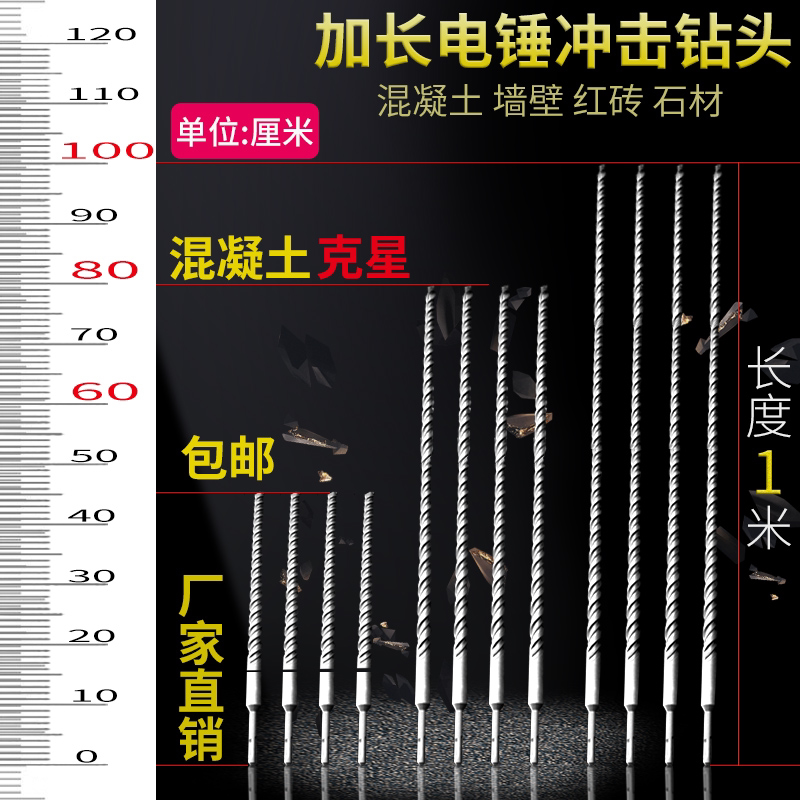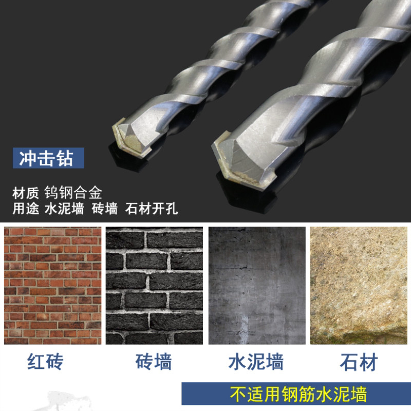 Lengthening impact drill bit concrete suit beating wall impact drill round head round shank electric drill drilling wall multifunctional straight shank