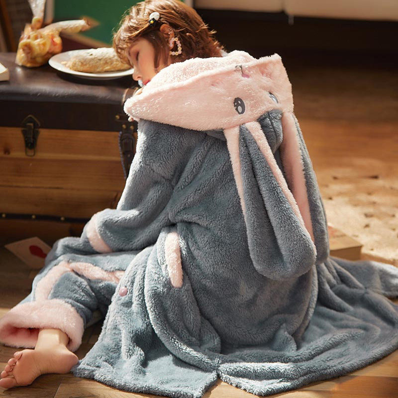 Nightgown women's winter long coral fleece pajamas women's autumn and winter thickened rabbit flannel 2022 new home clothes