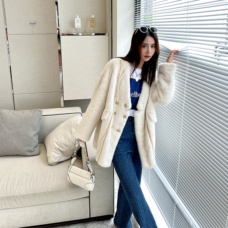 2021 new imported mink fur coat women's whole mink mid-length version young purple standard velvet mink fur coat