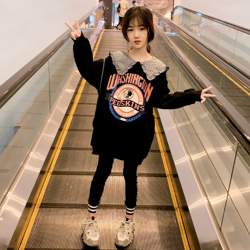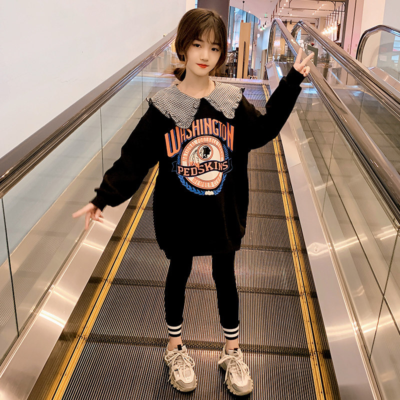 Girls' thick T-shirt Korean version of the Western style fashionable middle-aged children's suits spring and autumn children's autumn tops children's clothing 2022 new