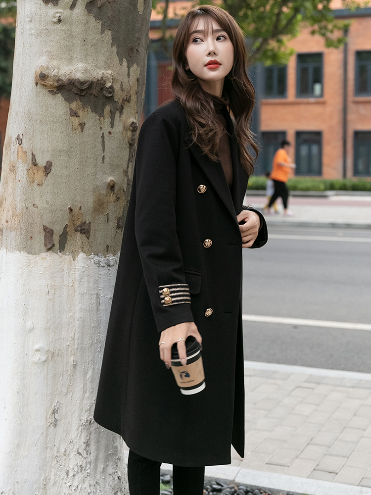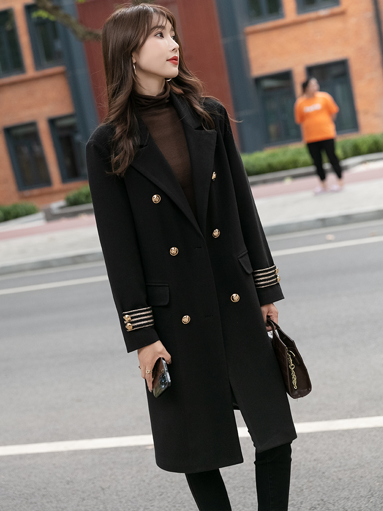 Small taller woman with medium long version 2022 Black autumn and winter plus cotton thickened Herbenwind Korean version of fur coats women