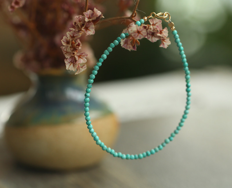 Original design natural green pine stone handmade female style 14K bag gold Xiaomi Pearl original mine open delivery hand string gift