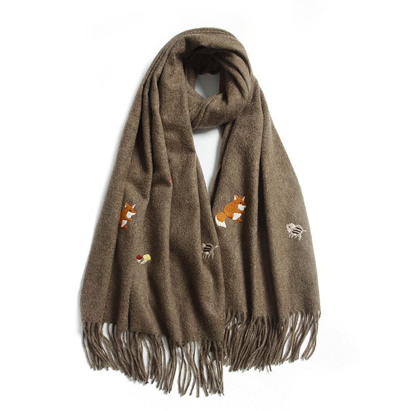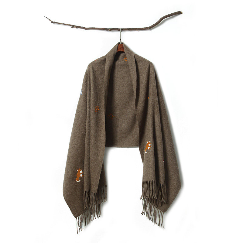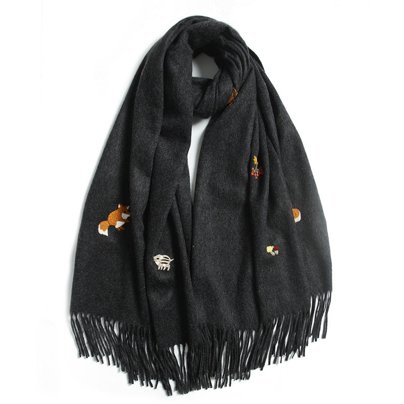 Yingmei hand-embroidered 100% pure cashmere scarf women's autumn and winter shawl multi-functional long version thickened and warm
