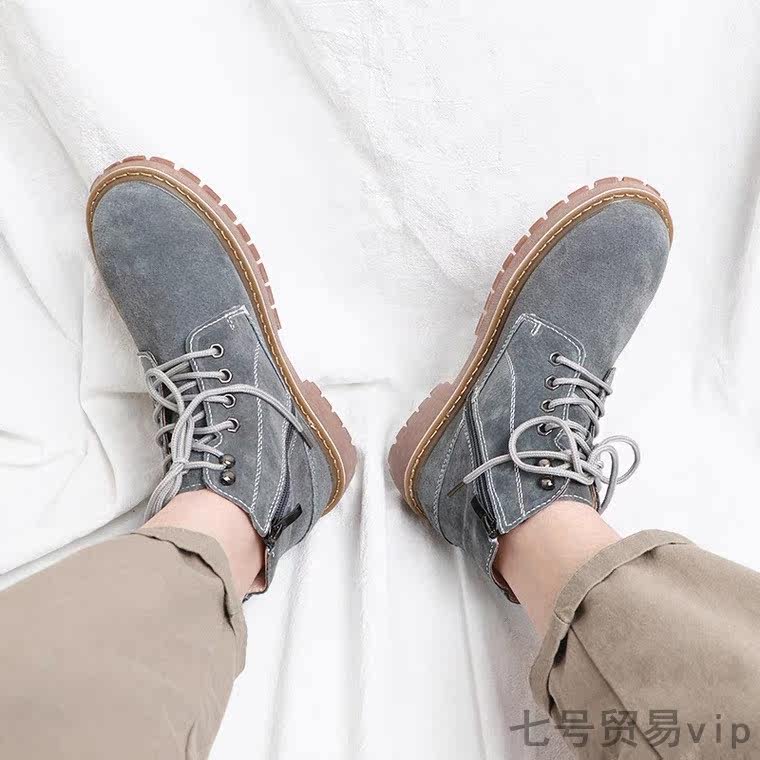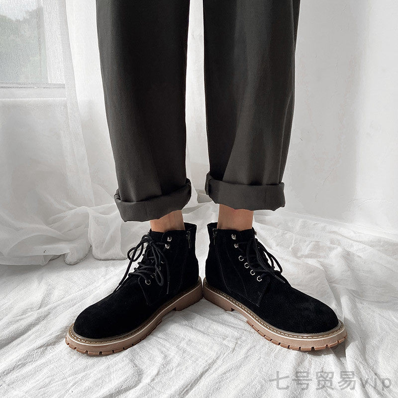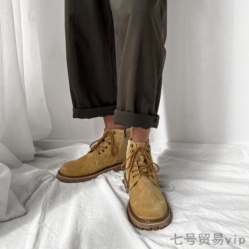 Winter new leather mid-tube Martin boots men's retro side zipper short boots rhubarb boots high tooling desert boots men