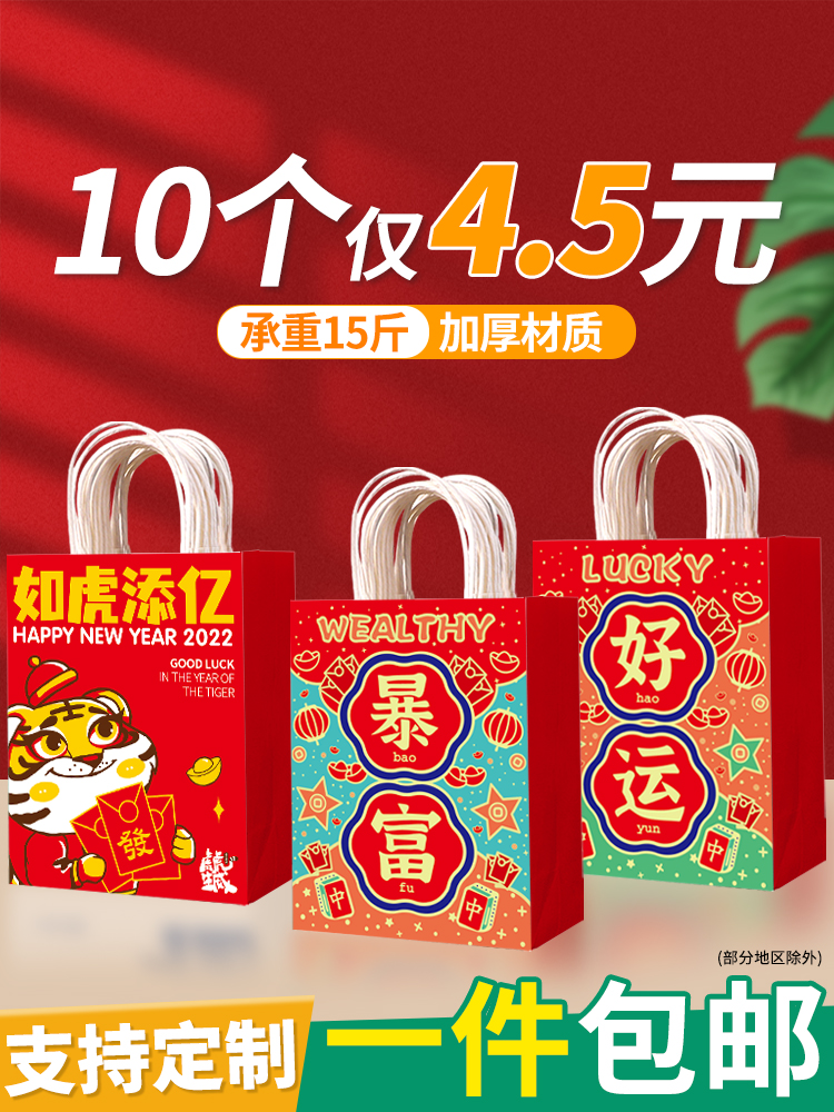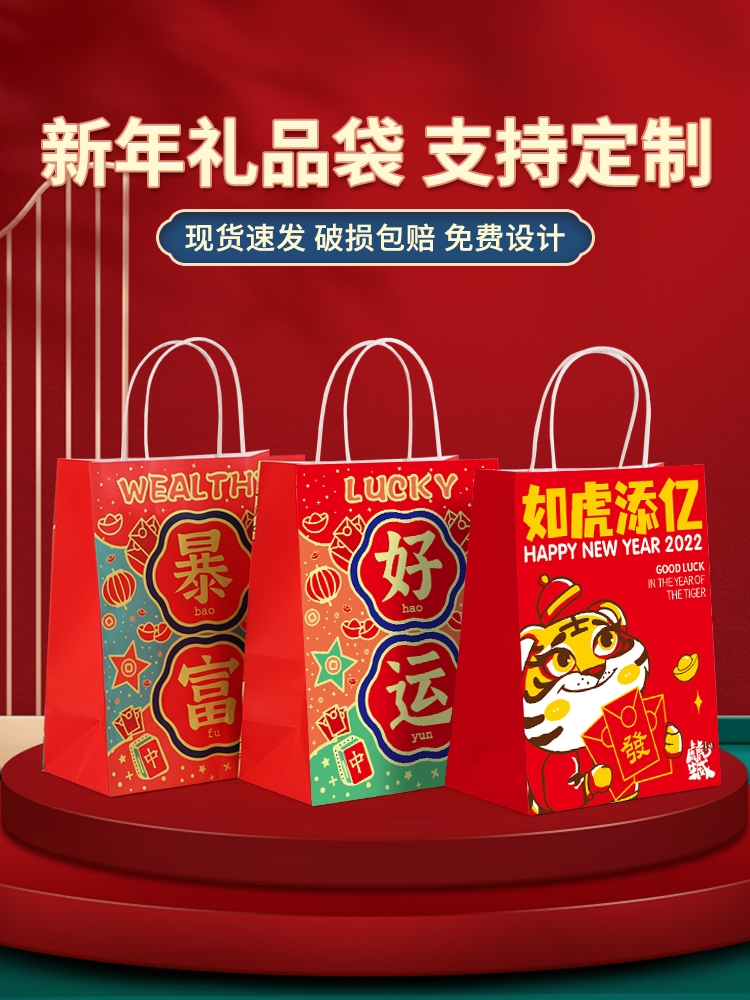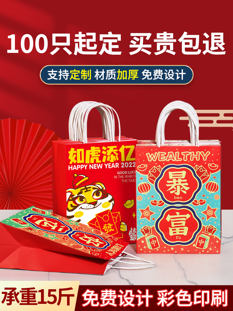 New Chinese New Year Handbags Gift Bags Outside custom accompanied handbags Disposable Bags Disposable Bags Thickened Printed Cow Leather Paper Bags
