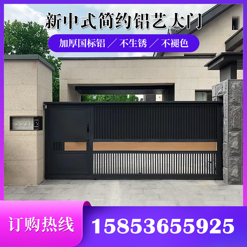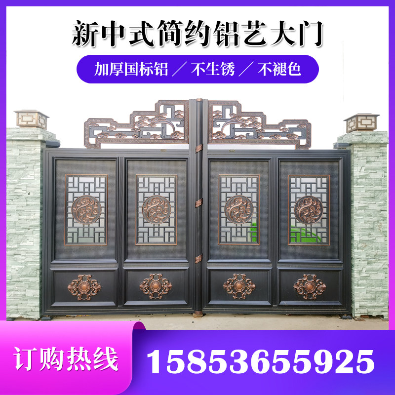 Custom Aluminum Art Villa Courtyard Double Switch Gate New Chinese Modern Electric Translation Door Aluminum Alloy Folding Suspension Door