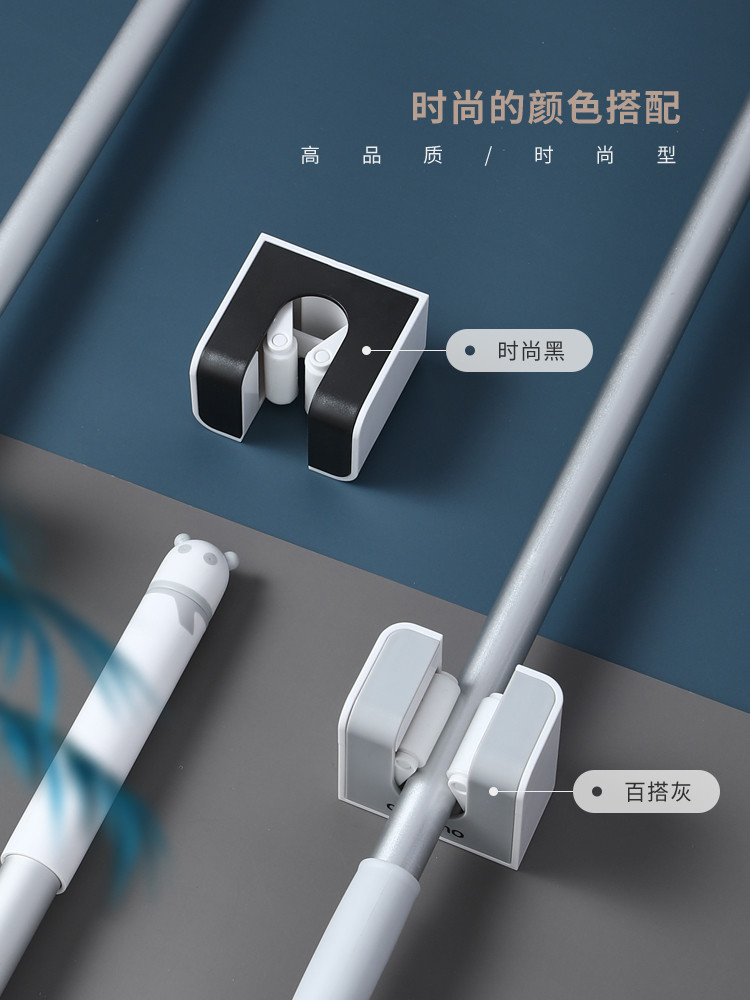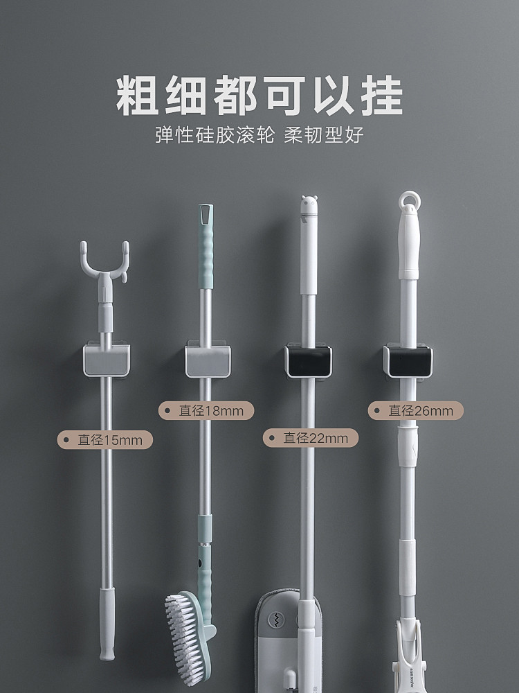 Powder room powerful mop hook free punch wall hanging fixed clip mop clip artifact mop hanger storage shelf