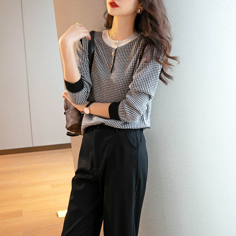 Gspun Round Collar Cotton Wool Knit Cardiovert Women 2022 Spring Autumn New Long Sleeves Hitch Undershirt Thin blouse Women