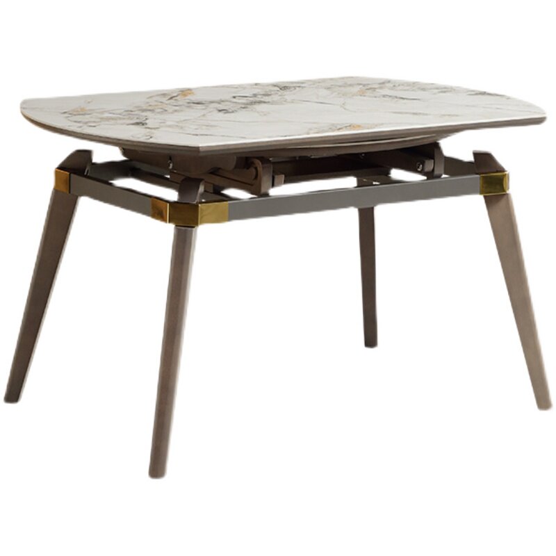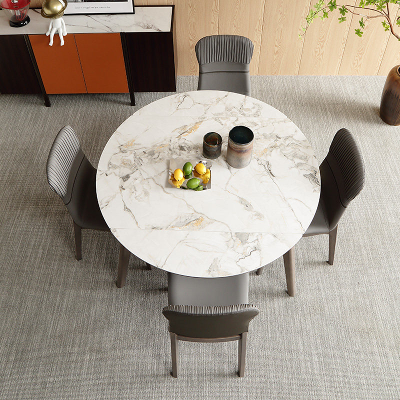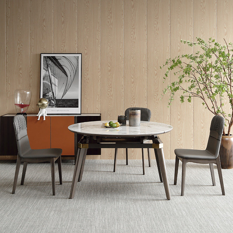 Modern light luxury telescopic dining table small apartment household multi-functional variable round solid wood rock plate dining table and chair combination