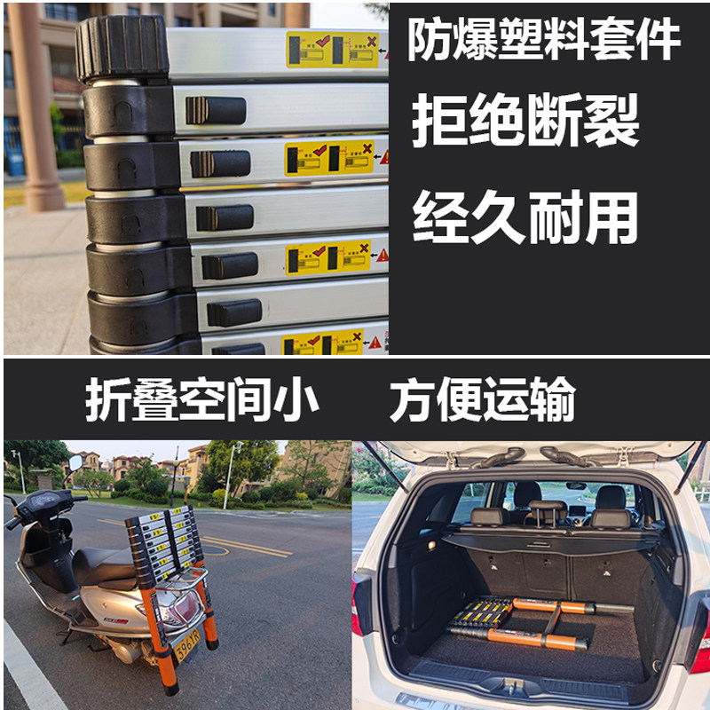 Thickened bamboo section lift retractable ladder shrinking ladder household ladder aluminum ladder portable folding ladder attic straight ladder project single ladder