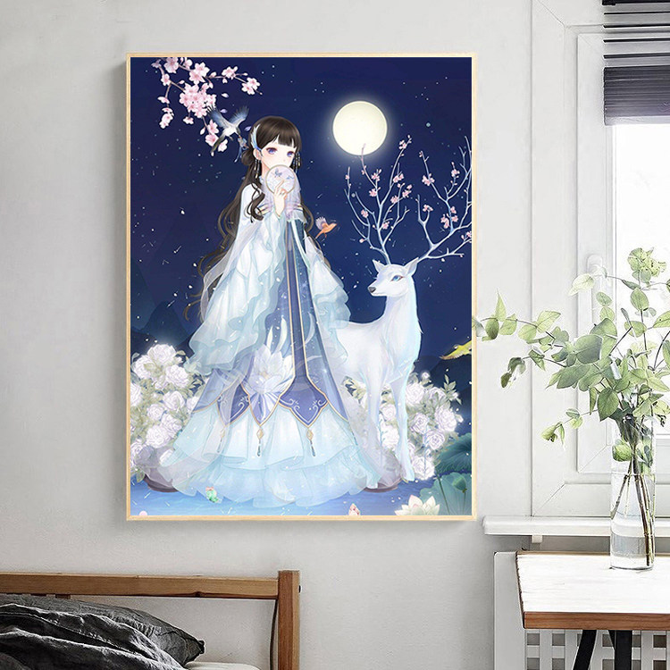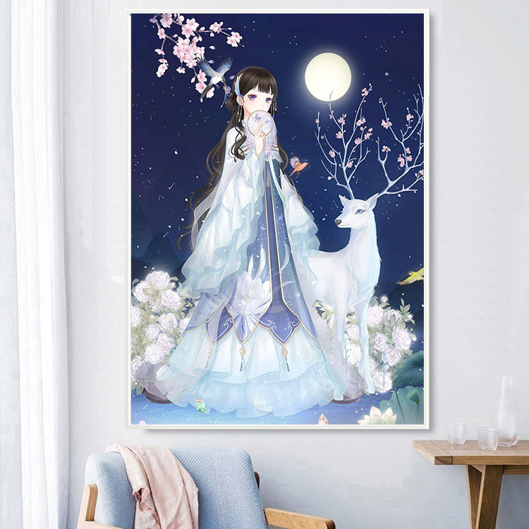 Flower Fairy Cross Embroidered 2022 New Living Room Thread Embroidered Light Luxury Kaitong Beauty Elk Deer Small Pieces Bedroom Simple Embroidery