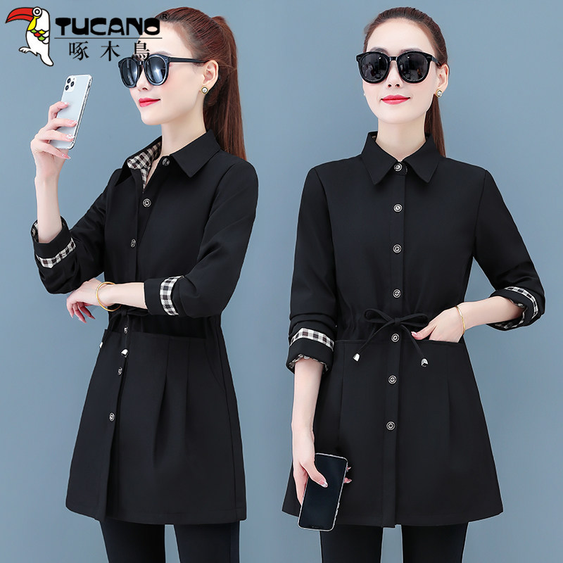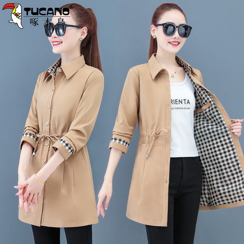 Woodpecker Middle Aged Mother Windjersey Woman Medium Long Version 2022 Spring Autumn New small sub-fall Autumn Clothing mid jacket