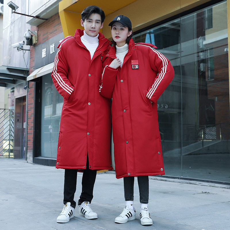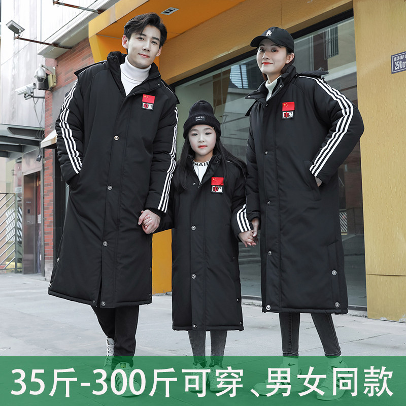 National team cotton-padded men's long down cotton-padded jacket women's cotton-padded jacket winter training gym children's cotton coat custom printed LOGO
