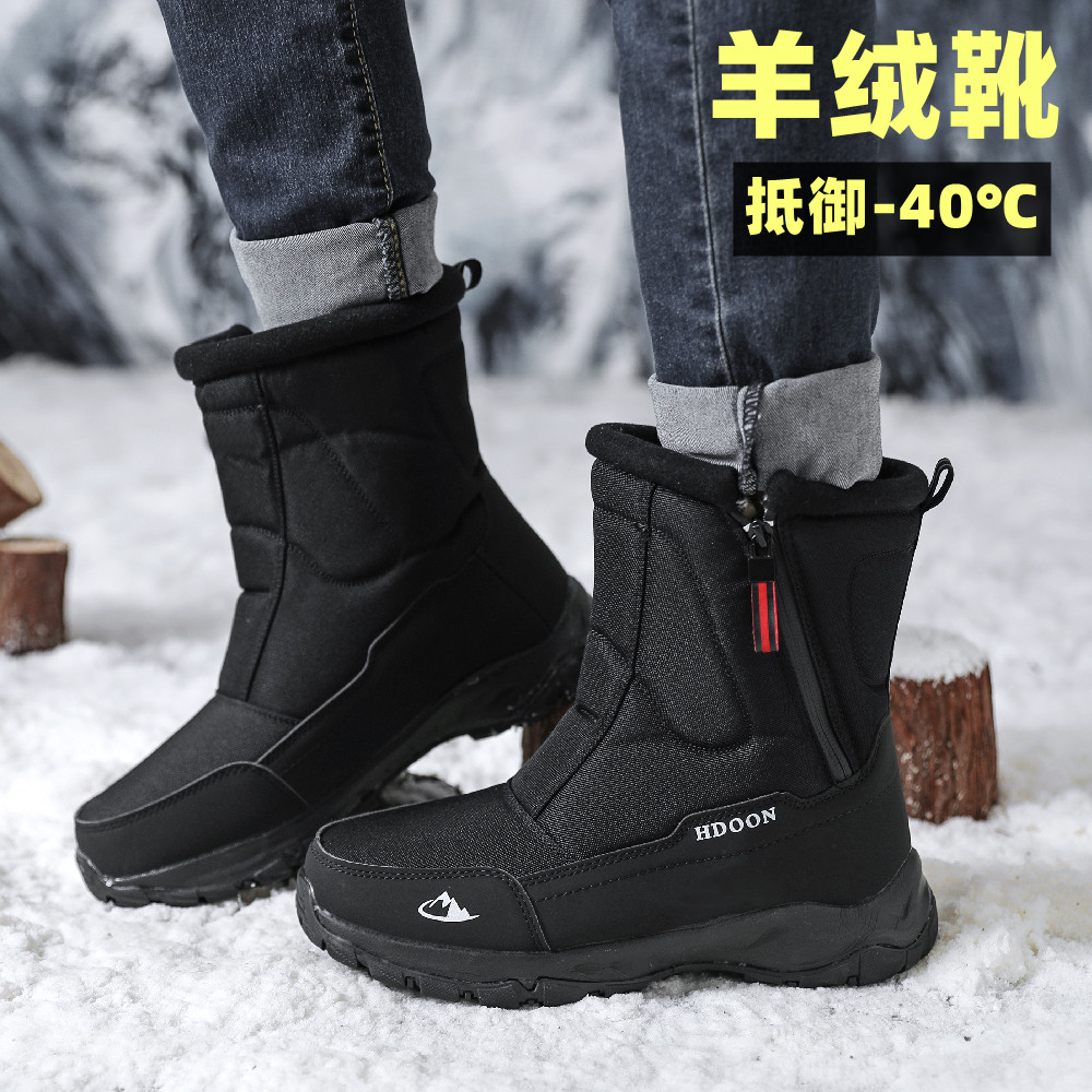 Outdoor Northeast Snow Boots Men thicken plus wool boots waterproof and anti-skid cotton shoes Couple travel anti-cold