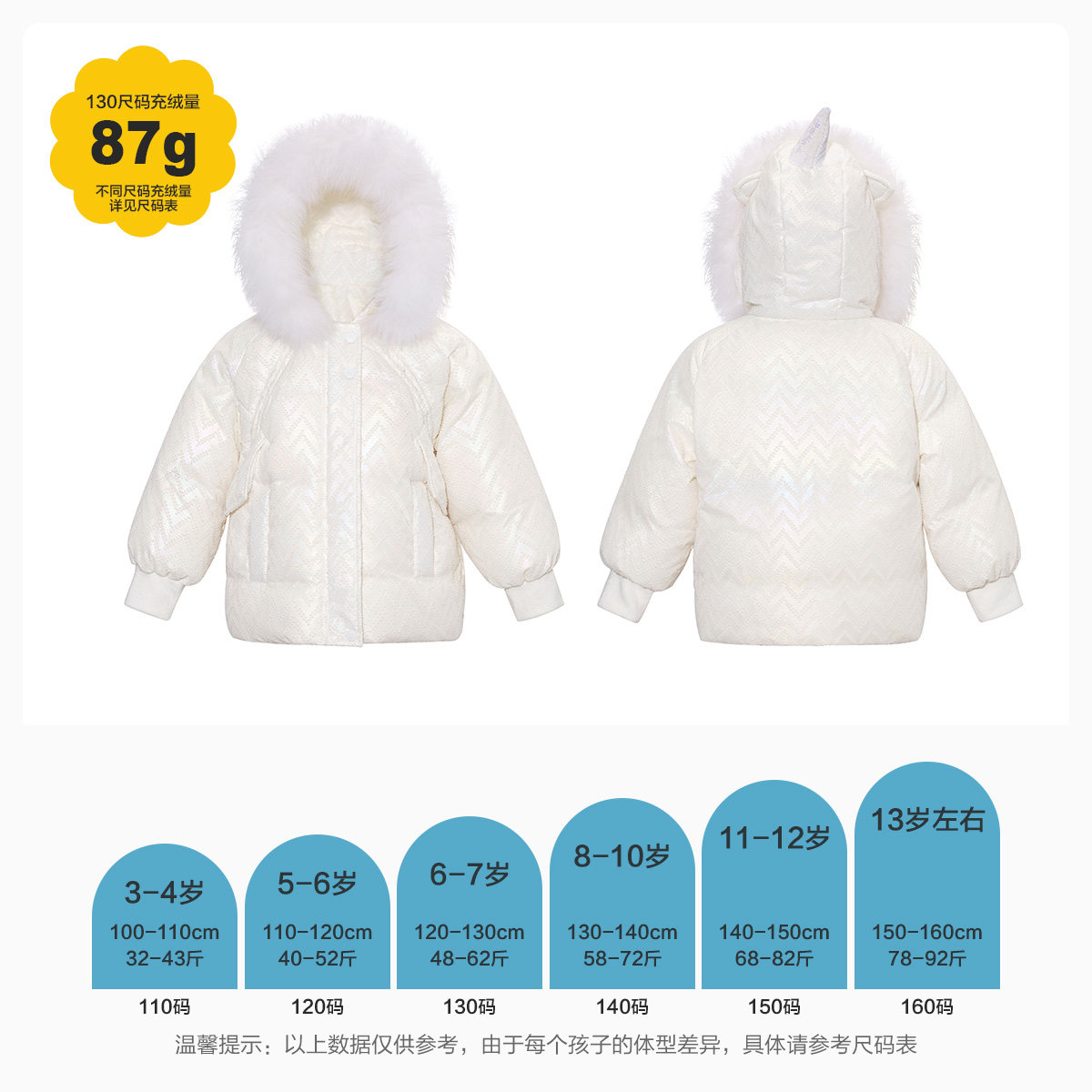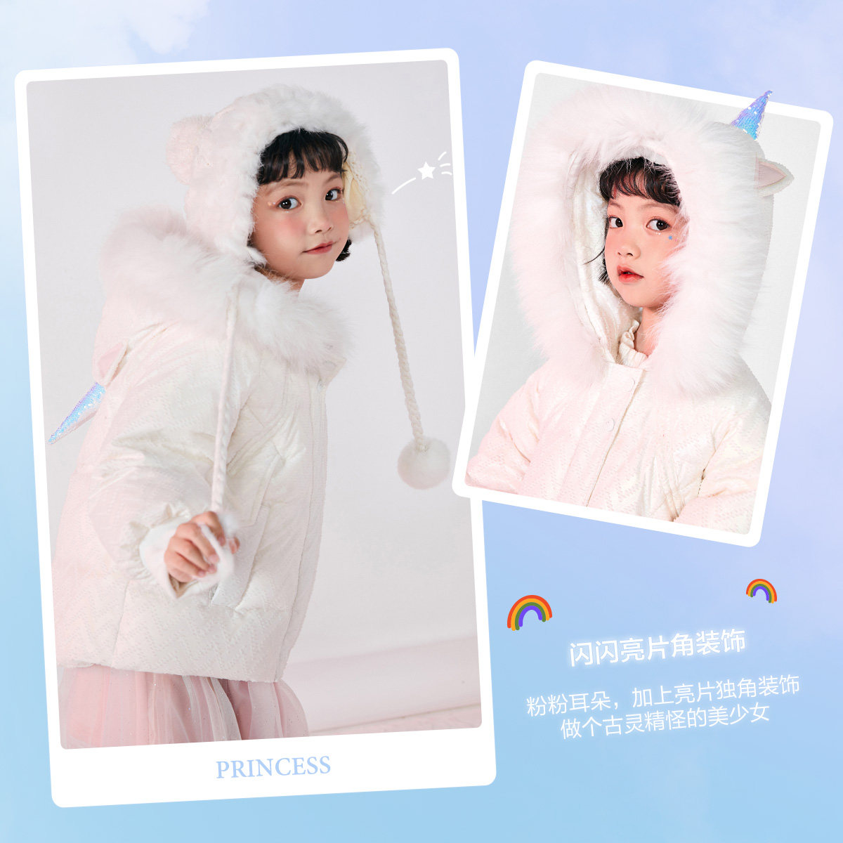 (Sun series) PEACEBIRD children's clothing girls unicorn style down jacket big fur collar faction to overcome 21 winter clothes