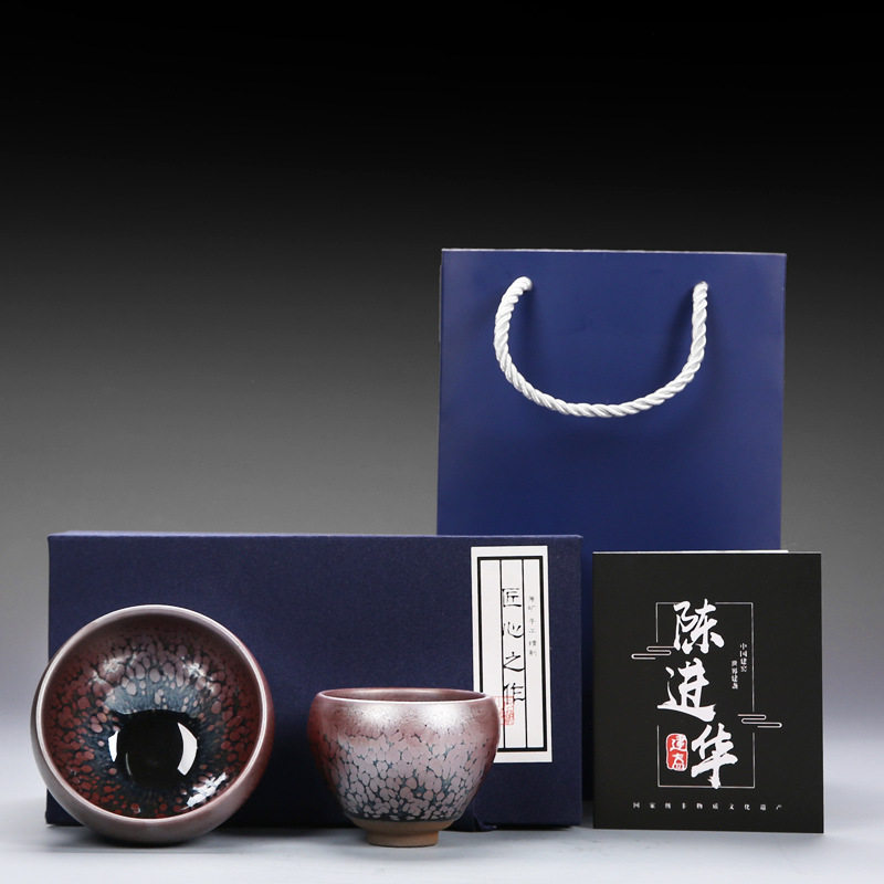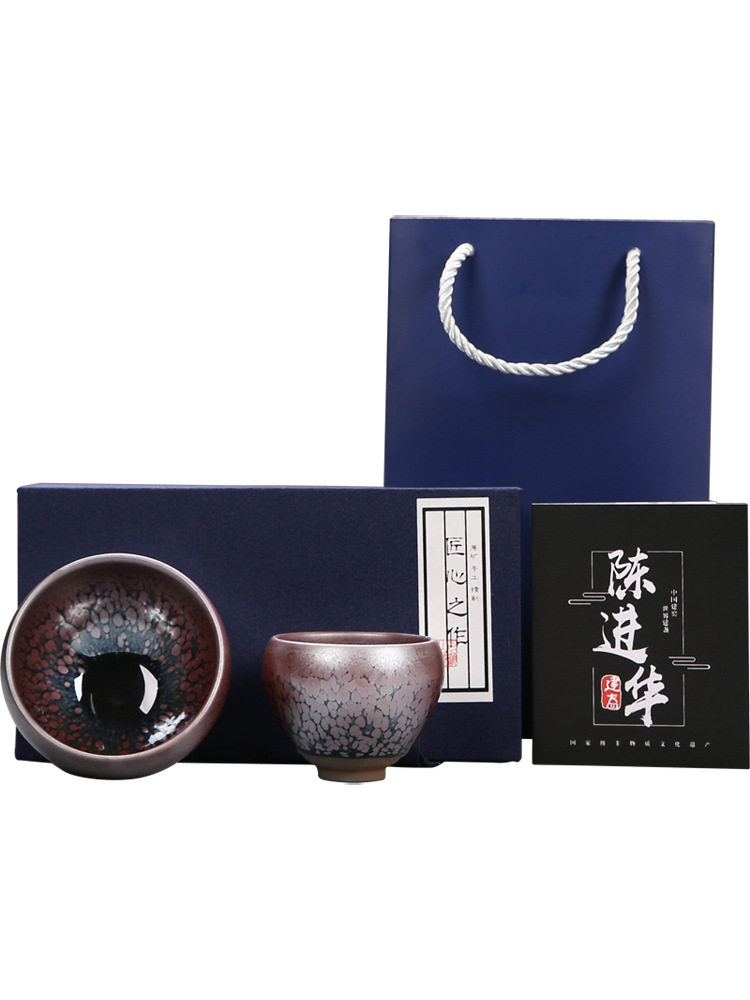 New product Jianyang Jianzhan color-changing high-end teacup master cup teacup set small pair cup Chinese kung fu tea set gift box