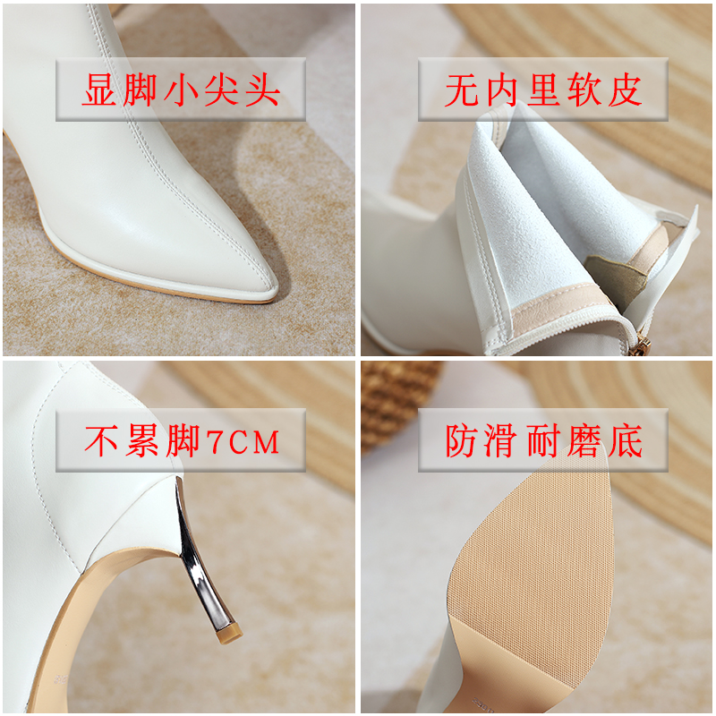 White short boots women's 2021 new pointed toe French high-heeled soft leather small Martin boots skinny boots high-heeled shoes autumn and winter